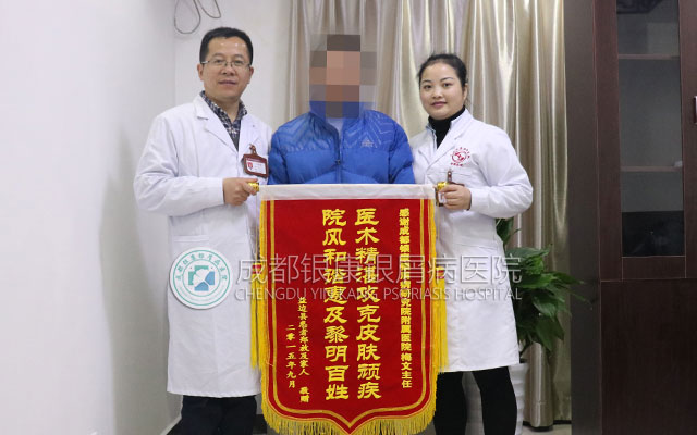 只留下色斑,完全康复出院。回家后,廖先生的工作伙伴们也不再远离他,重新恢复了正常健康的生活。还特地带来锦旗感谢吗,梅文医生。