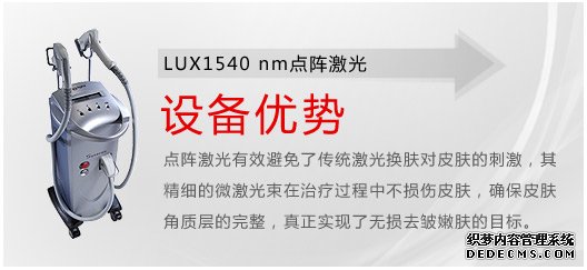 治疗优势:点阵激光有效避免了传统激光换肤对皮肤的刺激,其精细的微激光束在治疗过程中不损伤皮肤,确保皮肤角质层的完整,真正实现了无损去皱嫩肤的目标。